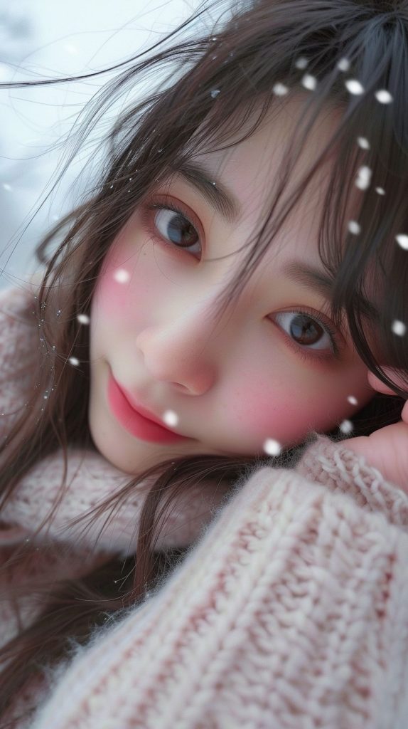 この自撮りはね、その時のものなの。雪の結晶が髪の毛にひっかかって、なんだか自然のアクセサリーみたいでしょ?でも実はこの日、ちょっとしたドラマがあって…