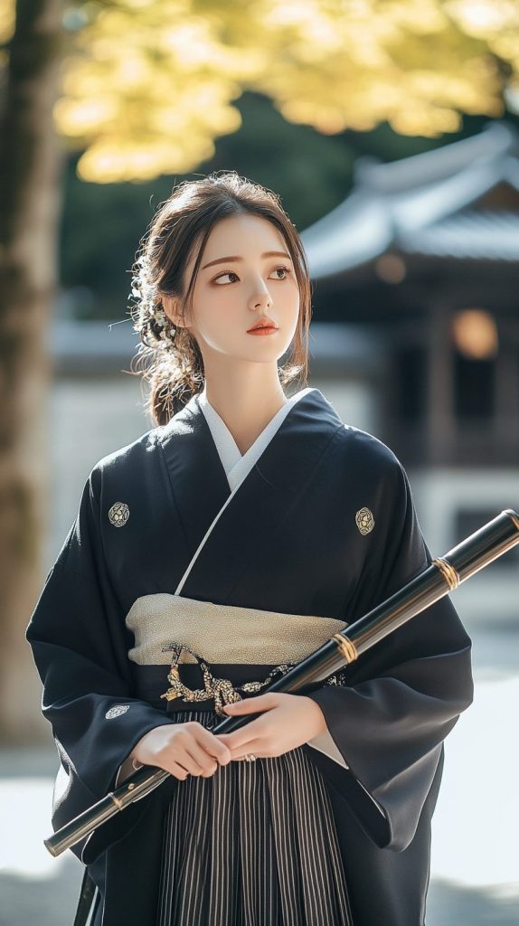 パンツ:縞模様の袴、「たちばなや」の品。伝統的なデザインでありながら、現代的なアレンジも取り入れている。