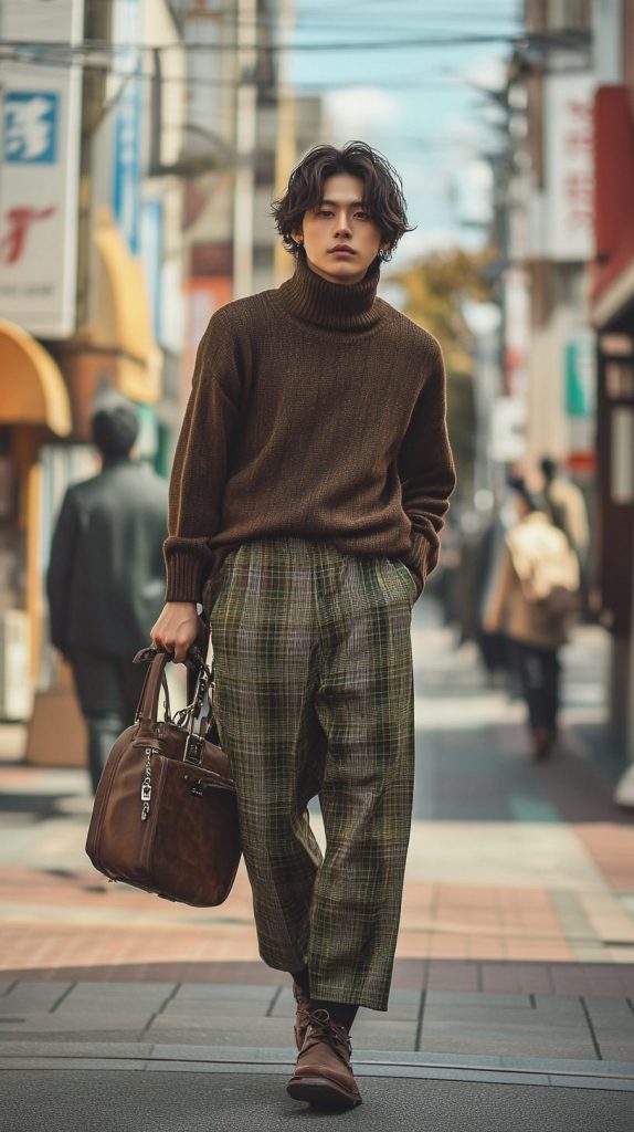 - アウター:ダークブラウンのタートルネックセーター(Acne Studios)